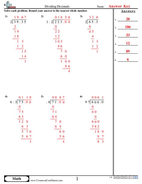Read Online Common Core Sheets Answer Key Dividing Decimals PDF